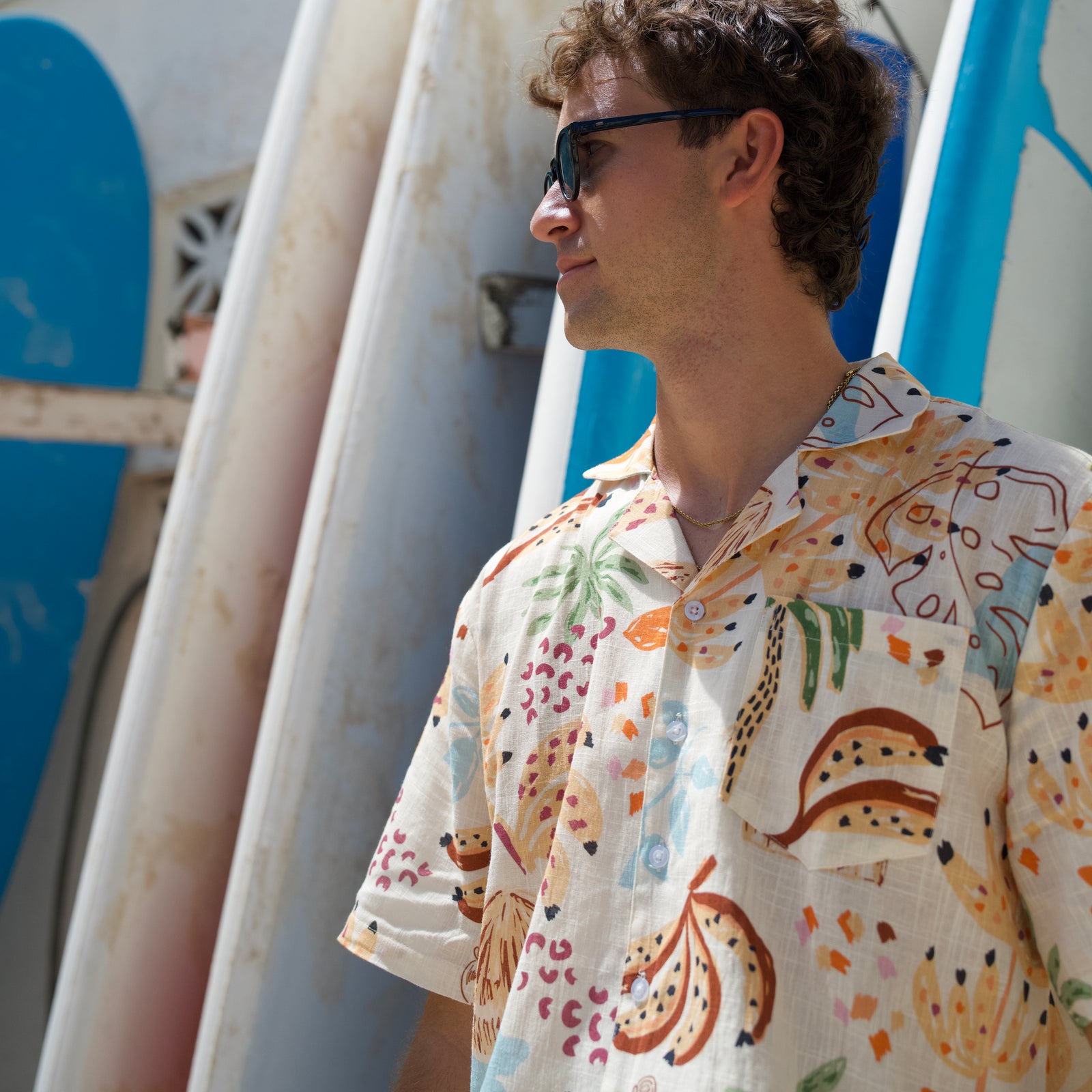 Think sun-faded colours, bold prints, and a fit that’s made for open buttons and ocean breezes — our new cotton shirts channel the golden-era island cool of the early ‘80s. Crafted from lightweight, breathable cotton with a vintage-washed finish, they’re built for long days, late nights, and everything in between. Think retro palms, breezy florals, and the kind of collar that begs for a convertible ride along the coast.